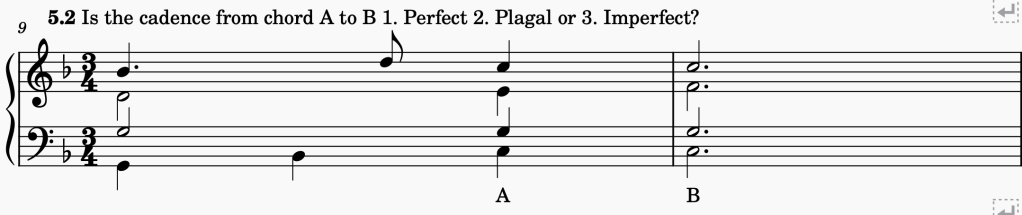 In this question we need to identify the cadence based on a passage of music (typically closed SATB).