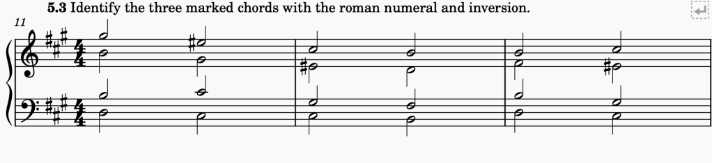 In this question we need to identify individual chords by their roman numeral and inversion within a passage of music (typically closed SATB).